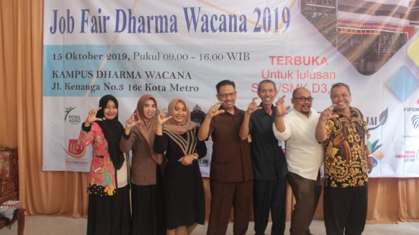 METRO-Tabirnews.com– Pusat Karir Sekolah Tinggi Sosial dan Ilmu Politik (STISIPOL), Sekolah Sekolah Tinggi Manajemen Informatika dan Komputer (STIMIK), Sekolah Tinggi Ilmu Pertanian (STIPER) dan Akademi Keperawatan (AKPER) Dharma Wacana Metro menggelar kegiatan Job Fair Dharma Wacana 2019.