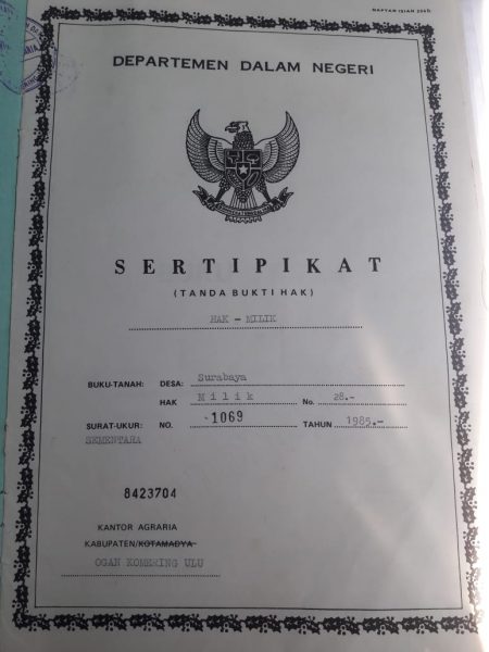 Diperkuat lagi dengan Sertifikat Hak Milik No.28 Surat Ukur No.1069 tahun 1985 Atas Nama Almaruhum Suami Ibuk Saadah TABRANI telah diperiksa dan sesuai dengan daptar dikantor Pertanahn tgl.18.8.2019 DI.303 No.352/2019 Berdasarkan Surat Ketrangan Ahli Waris.Tgl 9.8.2019.No.140/149/2005/IX/2019 Yang dibuat dihadapan Kepala Desa Surabaya berikut saksi dan diketahui Oleh Camat Banding Agung Nama yang berhak pemegang nama Sertifikat Adalah SA’ADAH Setelah di balik namakan selaku Ahli Waris Tunggal dalam pernikahan Tabrani Almarhum dengan Ibuk Saadah yang benar tidak mempunyai Keturunan.
