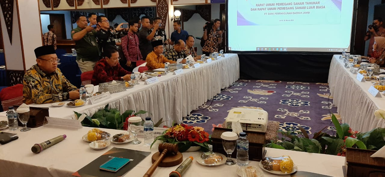 Kegiatan rapat umum pemegang saham tahunan dan pemegang saham luar biasa yang di ikuti seluruh Kepala Daerah se Provinsi Jambi ini dilakukan di rumah dinas Gubernur Jambi, Kamis (05/03), sekitar pukul 10.00 WIB.