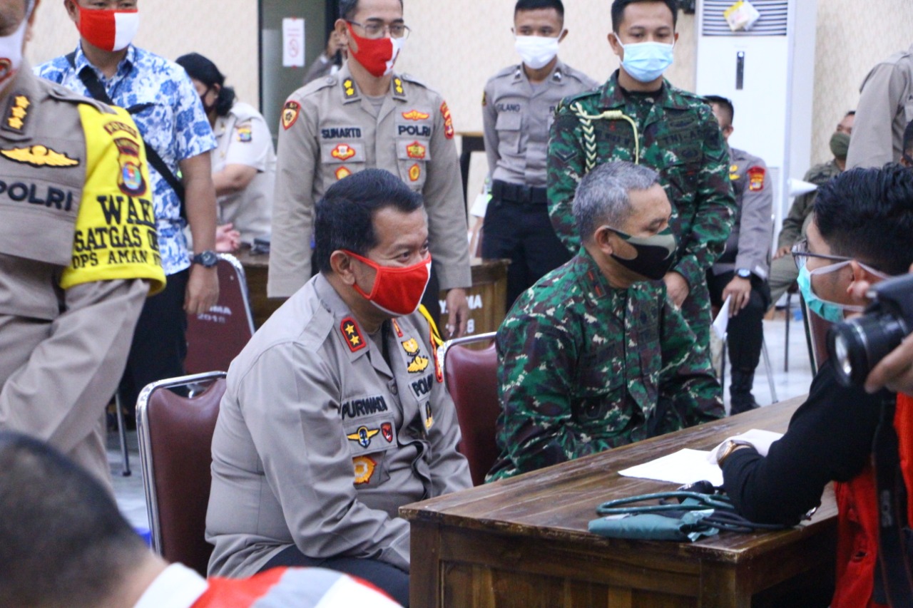BREAKINGNEWS–LAMPUNG-Tabirnews.com–Kapolda Lampung Irjen Pol Drs. Purwadi Arianto M.Si., didampingi Waka Polda Lampung Brigjen Pol Drs. Sudarsono SH.M.Hum., dan komandan Korem 043 Garuda Hitam Brigjen TNI Toto Jumariono S.S.,M.IKom.,Menghadiri dan menyaksikan langsung pelaksana Donor Darah dalam Rangka Hari Bhayangakara ke 74 yang akan dilaksanakan selama 3 hari dimulai tanggal 16 s/d 18 Juni 2020. Selasa 16 Juni 2020.