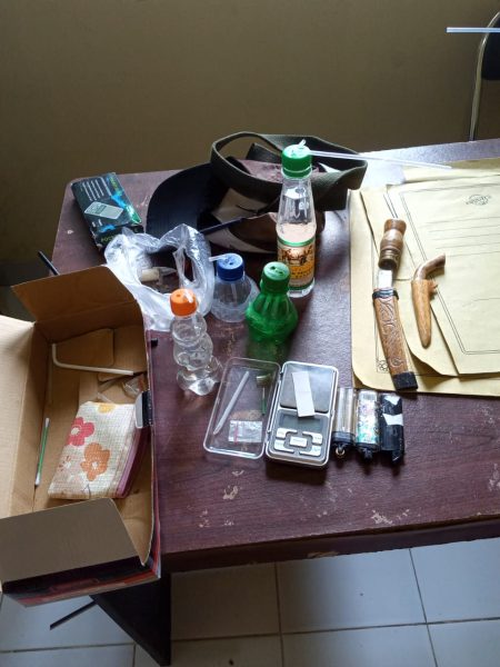 Sementara, barang bukti yang berhasil diamankan polisi antara lain, 4 buah botol plastik alat hisap (bong). 1 buah timbangan digital merk piket scale, 2 buah plastik klip diduga bekas Shabu, 1 buah sumbu kompor, 3 buah korek api, 1 buah kaca pirex, 1 bilah Sajam jenis pisau panjang kurang lbih 6cm dgn gagang dan bersarung kayu warna coklat.