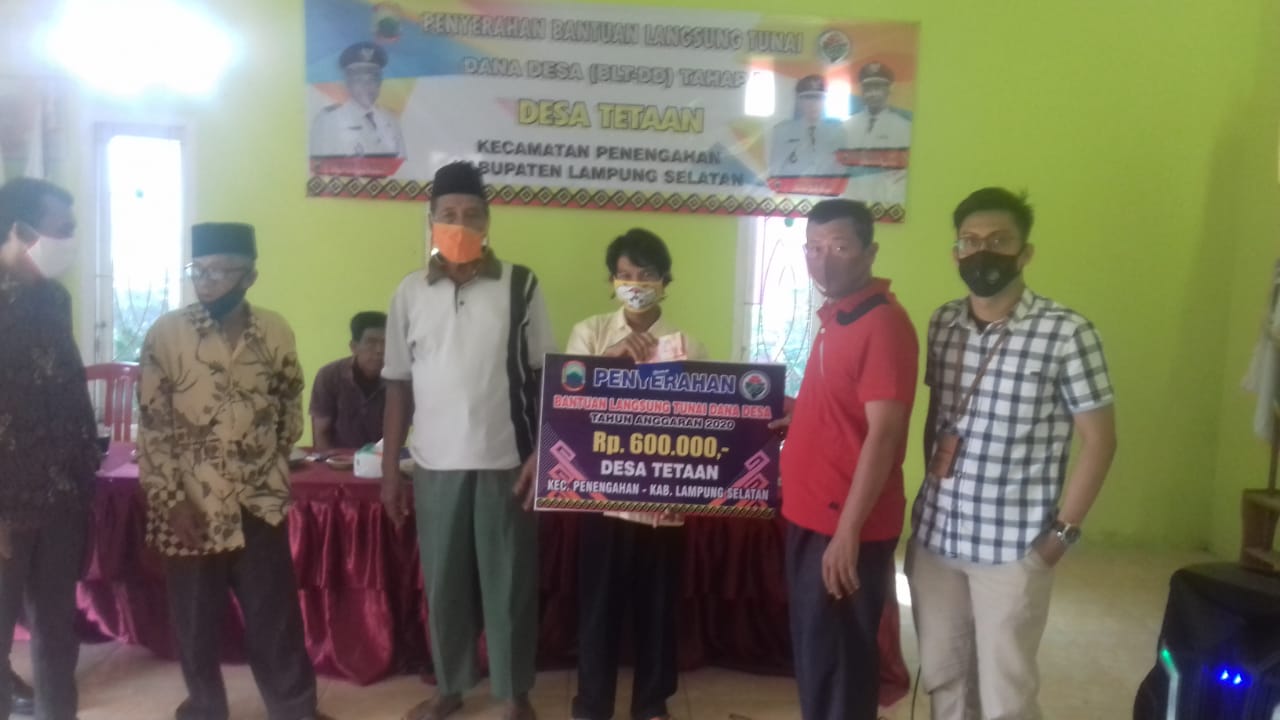 Bantuan langsung tunai (BLT), yang disalurkan oleh pemerintah Desa Tetaan kecamatan Penengahan’ kepada 87 (KPM), Berlangsung di aula kantor Desa Tetaan kecamatan Penengahan kabupaten Lampung Selatan . Jum’at,(07/08/2020).