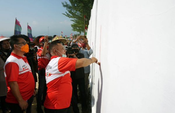 Goresan pertama dari tangan Bupati Lampung Selatan, H. Nanang Ermanto menandai dibukanya lomba mural HUT ke-75 Kemerdekaan RI.