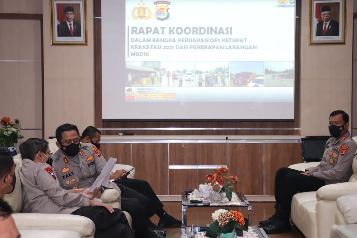 Dipimpin langsung oleh Kapolda Lampung Irjen Pol Hendro Sugiatno, rapat koordinasi langsung mengupas tentang pengamanan jelang hari raya idhul fitri 1442 H dan larangan mudik di wilayah hukum Polda Lampung khususnya di Lampung Selatan.