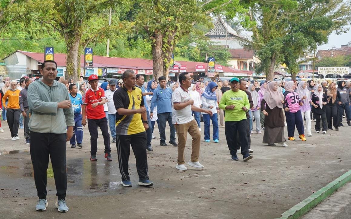 Bangko, Tabirnews.com – Bupati Merangin H M Syukur bersama Asisten I Setda Merangin M Sayoeti dan sejumlah kepala Organisasi Peragkat Daerah (OPD), memimpin jalannya Senam Jumat Sehat, di Ruang Terbuka Hijau (RTH) Pasar Bawah Bangko, Jumat (01/8).