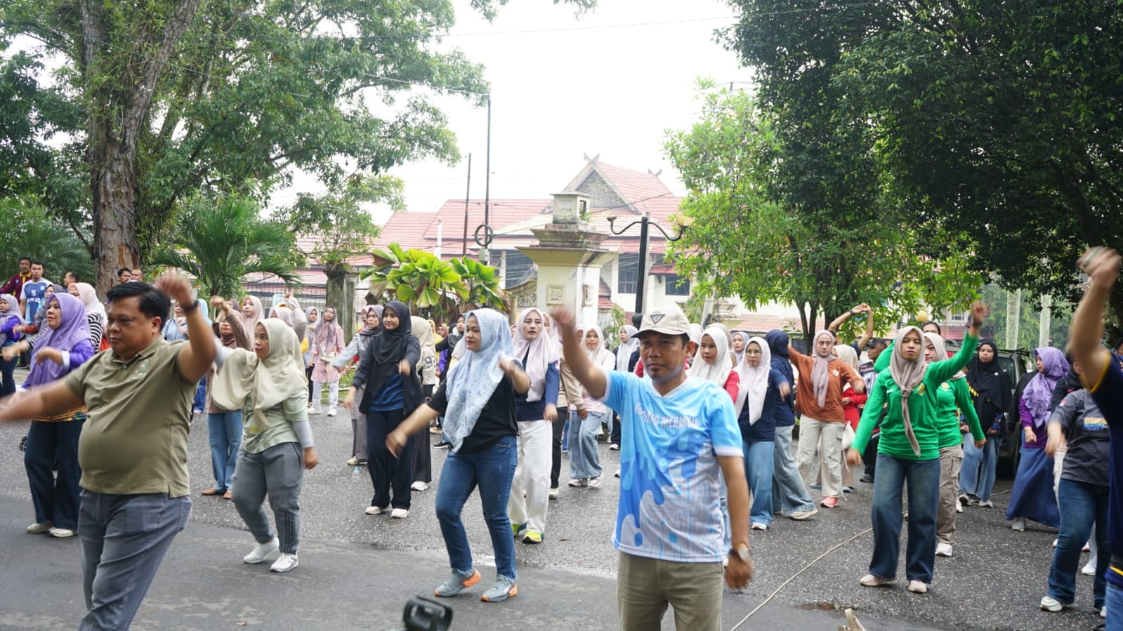 “Hari ini kami menggelar acara Goro dan senam sehat bersama. Setiap OPD bersama-sama membersihkan lingkungan kerja masing-masing. Ada juga OPD yang membersihkan titik-titik fasilitas umum,” ujar Sekda Zulhifni.