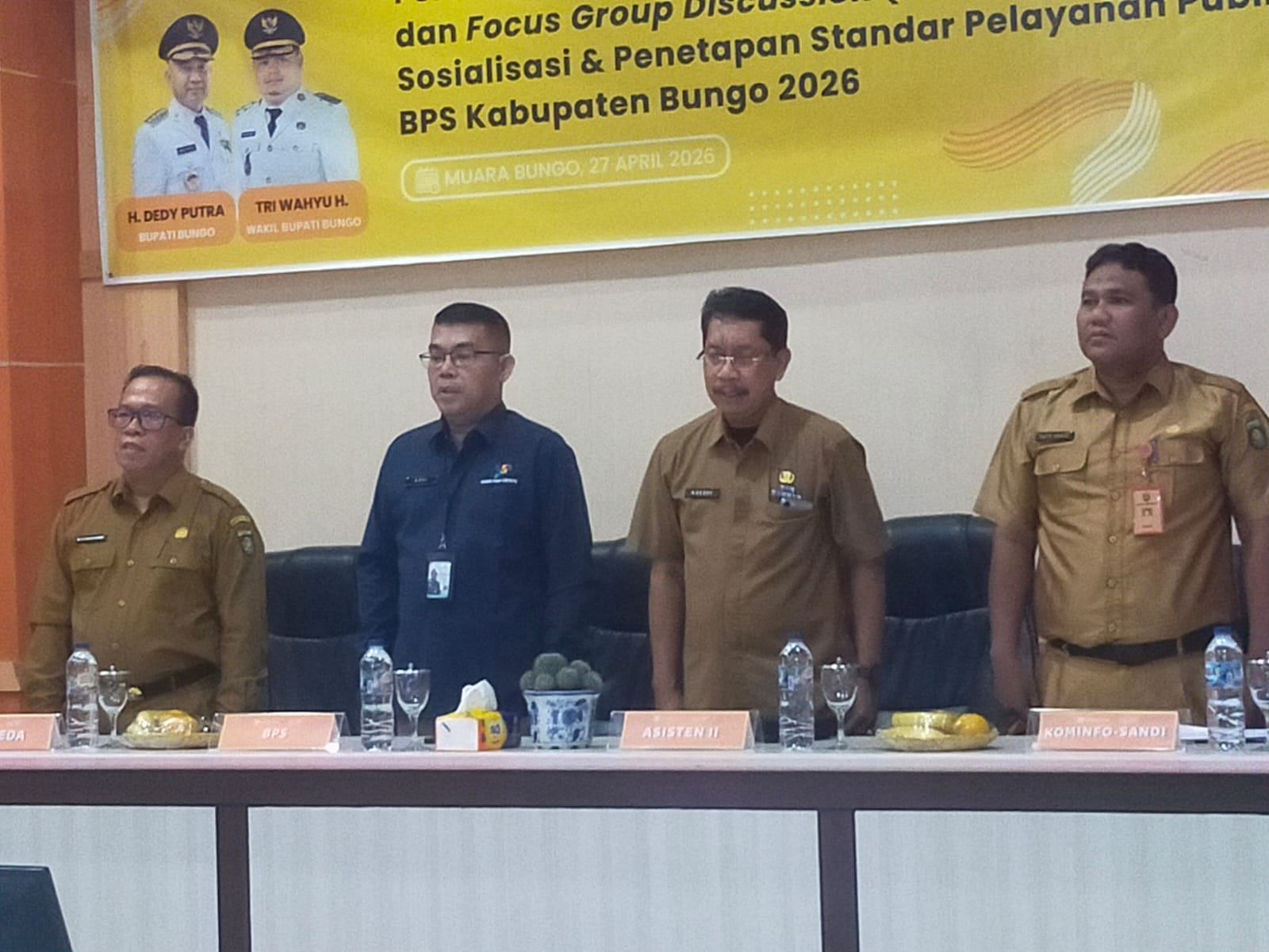Kegiatan yang berlangsung di Aula Cempaka Kuning Bappeda Bungo, Senin (27/4/2026), dihadiri Asisten II Setda Bungo Dedy Irawan, Kepala Dinas Kominfo Taufik Hidayat, perwakilan Bappeda, Kepala BPS Kabupaten Bungo Ardiansyah, serta sejumlah Organisasi Perangkat Daerah (OPD) dan empat desa percontohan.