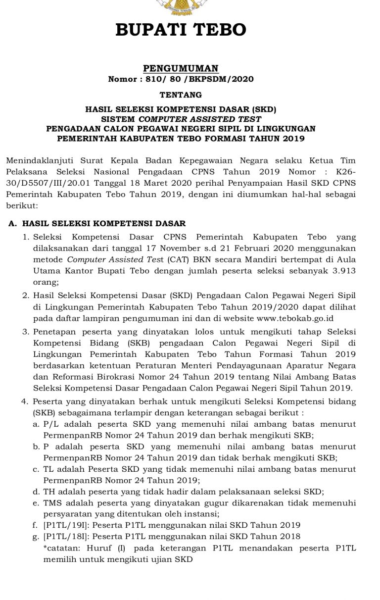 Tebo, tabirnews.com – Dalam pengadaan CPNS di lingkungan Pemerintah Kabupaten Tebo formasi 2019, hari...